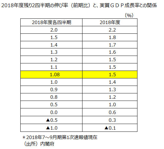 ―18年度内閣府年央試算+1.5%は残り各前期比年率+4.4%必要。下振れ必至―