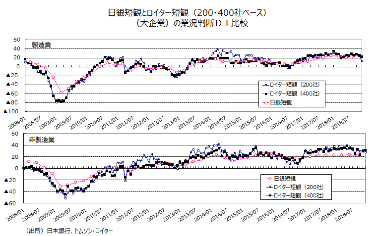 ●この予測は、日銀短観DIと連動性が高いことが知られているQUICK短観(12月調査)やロイター短観(12月調査)などを参考にした。