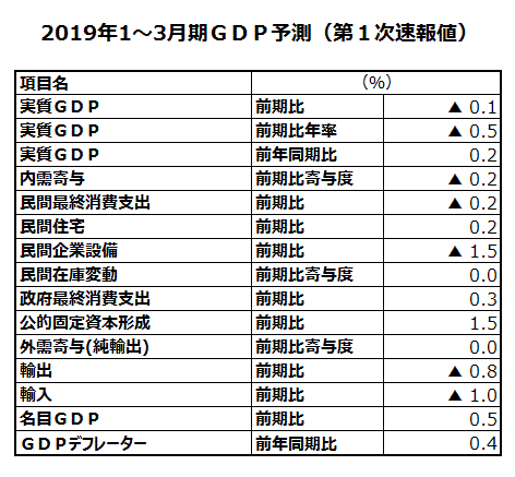 -1~3月期実質GDP第1次速報値・前期比は2四半期ぶりのマイナス成長に-