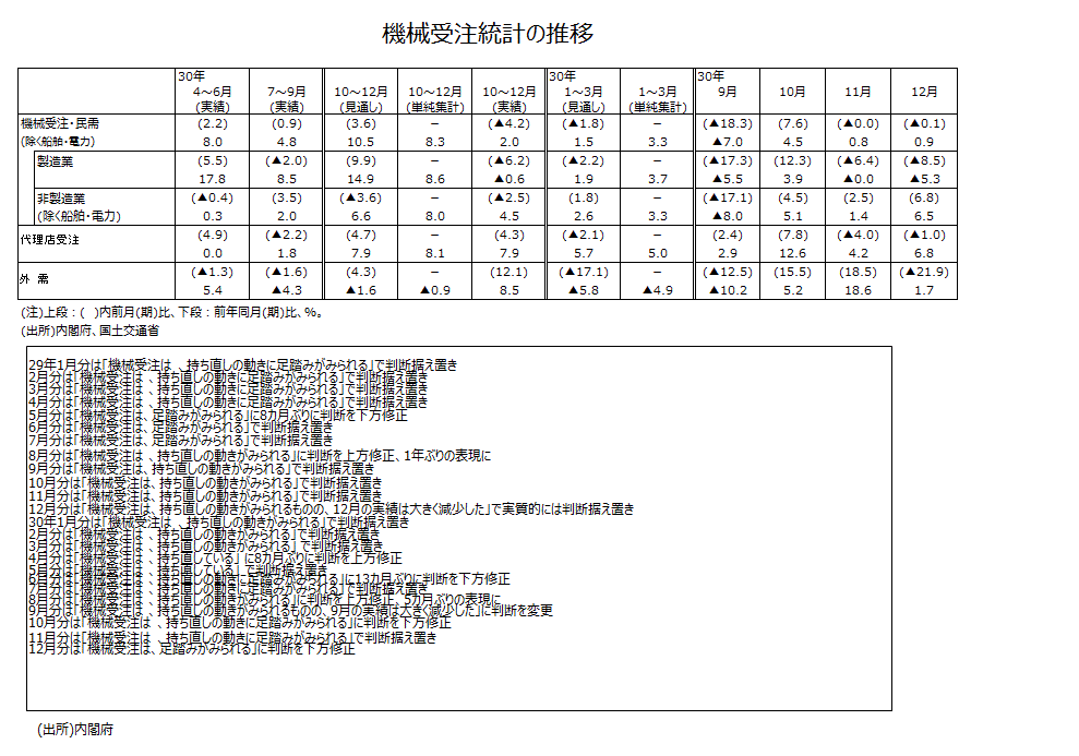 2018年12月分機械受注