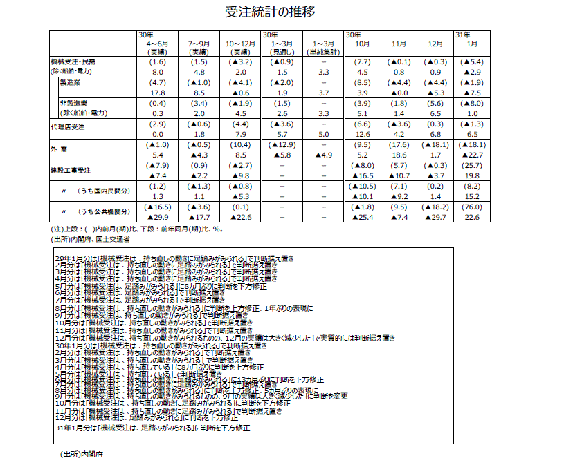 ―1月分機械受注(除船電民需)は前月比▲5.4%と3カ月連続の減少―