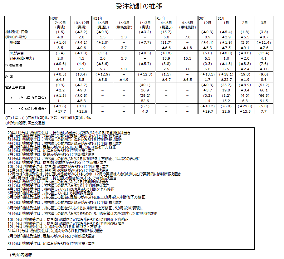 2019年3月分機械受注