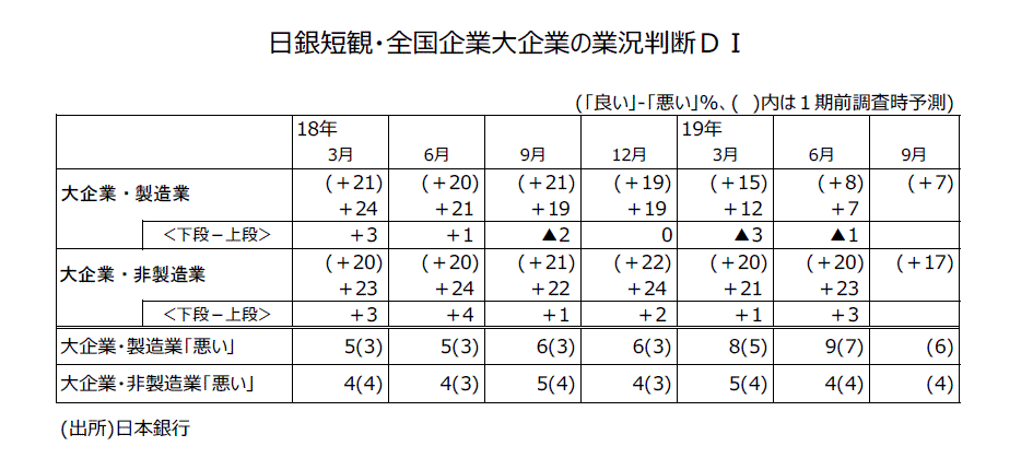 ―締め切りは6/28。米中貿易摩擦激化で大企業・製造業・業況判断DI+7と2期連続悪化―