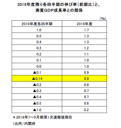 ―内閣府年央試算19年度見通し+0.9%に各四半期前期比年率▲0.5%が必要―