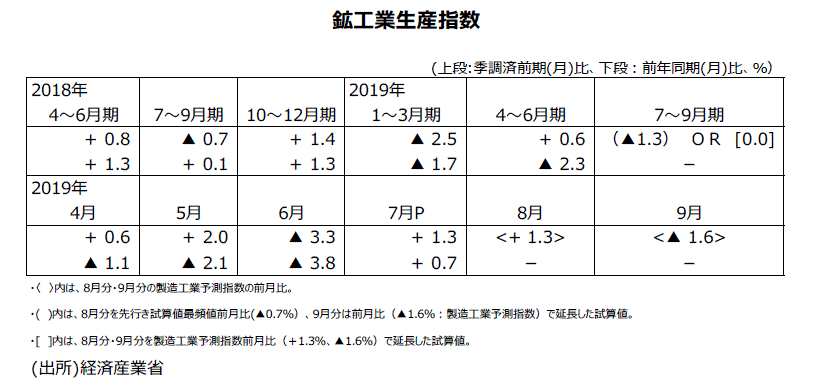 2019年7月分鉱工業生産指数・速報値について