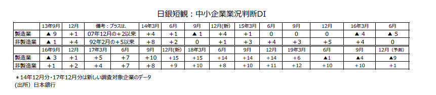 ―中小企業・非製造業・業況判断DI+10で前期比横這い。5期連続2ケタのプラスで底堅さ示唆―