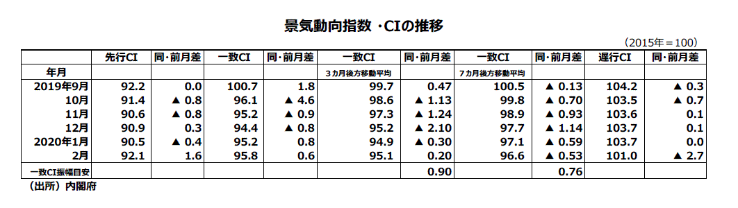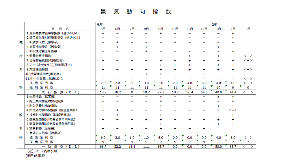 -新型コロナが潰した、一致CI3月分前月差+0.70での「下げ止まり」への上方修正-