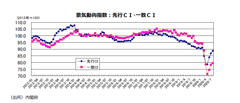 -先行CI前月差+2.1で3カ月連続上昇、一致CI同+1.1と3カ月連続上昇-
