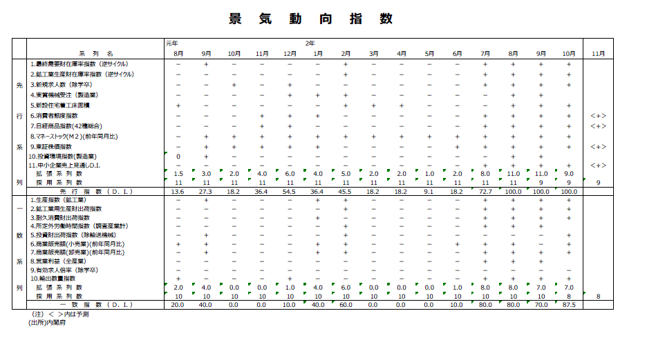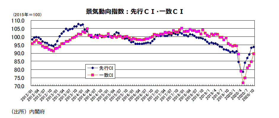 2020年10月分景気動向指数(速報値)