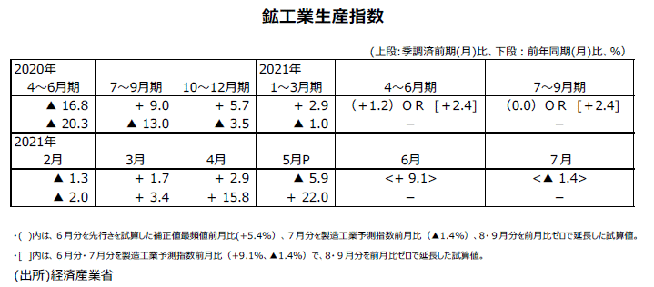 -鉱工業生産指数・前月比▲5.9%と3カ月ぶりの低下。半導体不足響く-