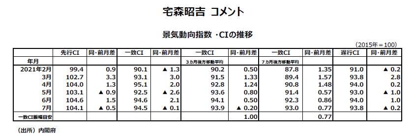 2021年7月分景気動向指数(速報値)