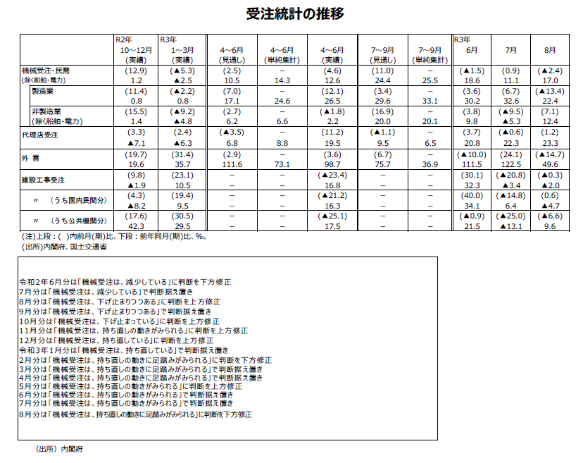 2021年8月分機械受注