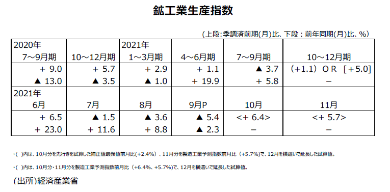 2021年9月分鉱工業生産指数・速報値について
