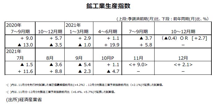 2021年10月分鉱工業生産指数・速報値について