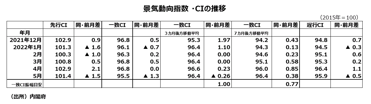 2022年5月分景気動向指数(速報値)
