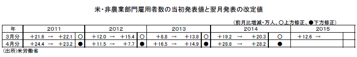 また、3 月分の雇用統計で非農業部門の雇用者数の前月差は+12.6 万人と予想を大幅に下回ったが、これは3 月分が当初弱めに出て翌月4 月分発表時に上方修正されやすいという季節性によるところが大きいとみられる。