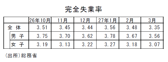 金融機関強盗、ホームレスなど改善、3 月分の完全失業率は97 年6 月以来の3.35%で3.4%に