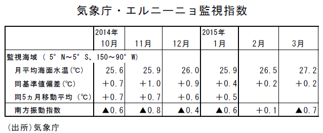夏場の景気の懸念材料のひとつはエルニーニョ現象