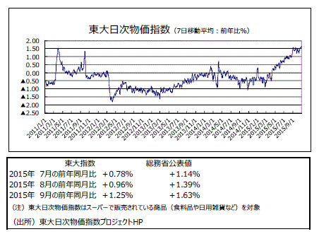 日・米ともに10 月の金融政策変更なし。東大日次物価指数7 日移動平均10 月25 日~29 日+1.6%台