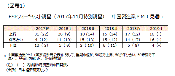 (「ESPフォーキャスト調査」11月特別調査の中国製造業PMI見通しで悲観的見方は減少)