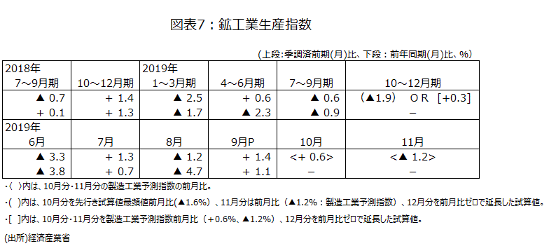 (鉱工業生産指数7~9月期・前期比▲0.6%、海外要因からの輸出減少が響く)