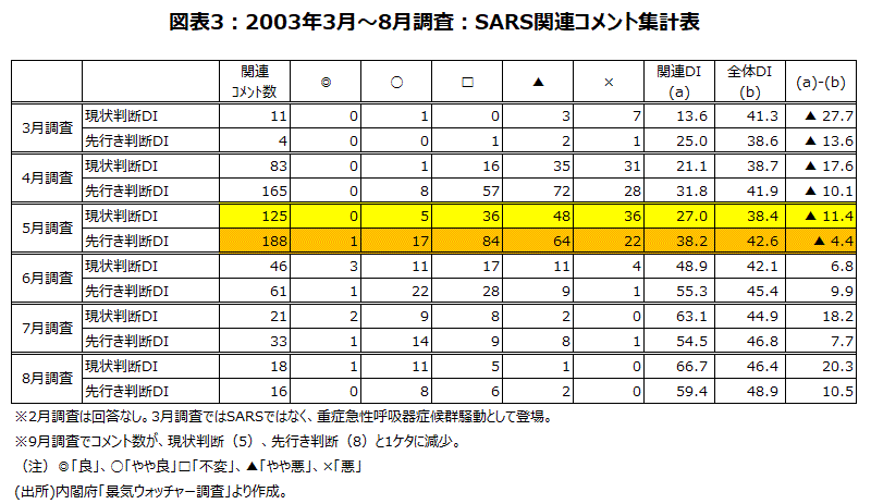 (懸念される新型コロナウイルスの感染拡大。2003年SARS関連現状判断DIの厳しい局面は3カ月程度だったが)
