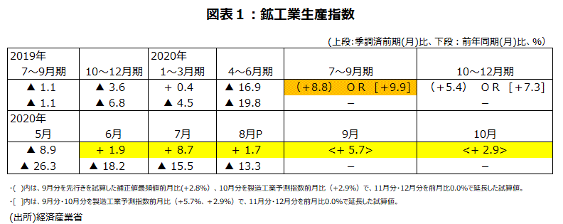 (7~9月期は鉱工業生産指数や実質GDPは、大幅悪化した4~6月期の反動もあり大幅な増加に)