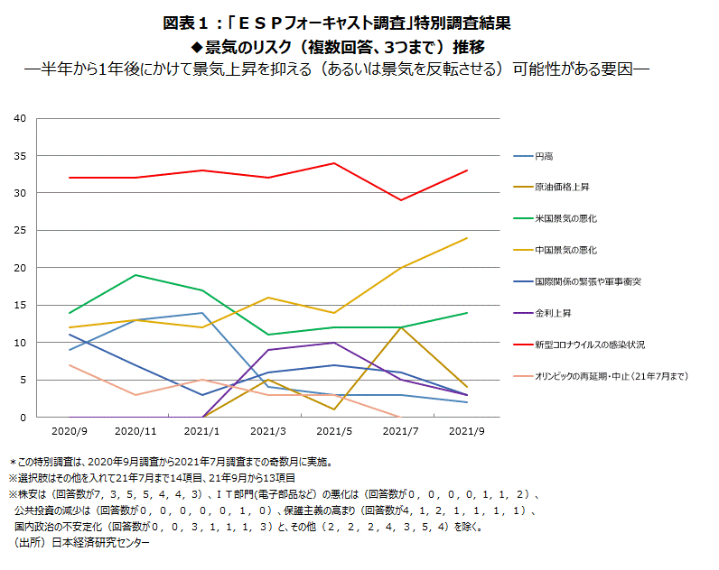 (ESPフォーキャスト9月調査・景気のリスク要因で「中国景気の悪化」が24まで上昇し、第2位)