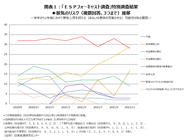 (ESPフォーキャスト調査・特別調査で、「コロナ感染」は景気リスク1位の座を明け渡す)